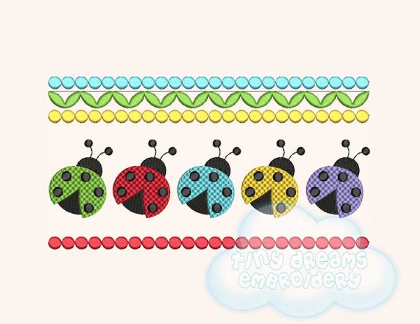 Multicolor ladybug smocking border embroidery design