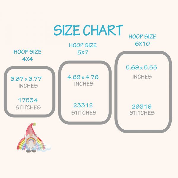 Embrace the enchantment of our ‘Rainbow’ digital machine embroidery design, complemented by a whimsical gnome and a heart motif. This design exudes love and magic, making it a delightful addition to any creative project.