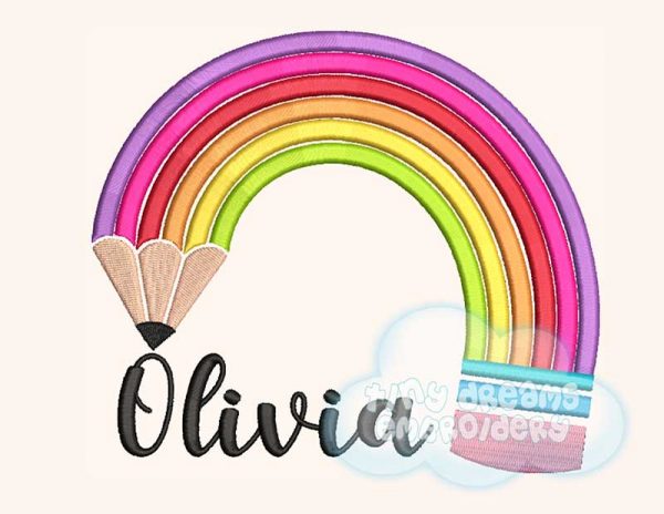 Multicolor rainbow pencil monogram/name digital embroidery design