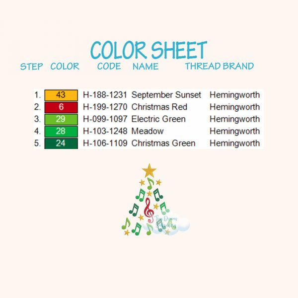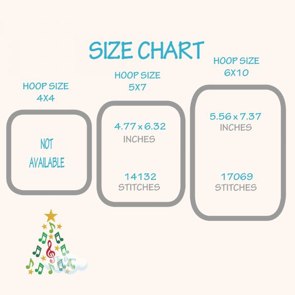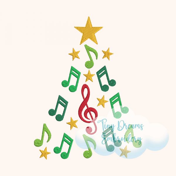 This festive embroidery design features a Christmas tree made of music notes and a treble clef, creating a melody-filled holiday look. A musical star tops the tree, adding charm to any music lover’s seasonal project.