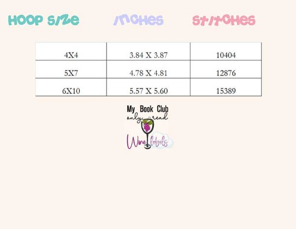 Be the first to review “My book club only read wine labels cup of wine digital embroidery design”