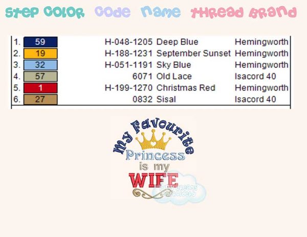 My favourite princess is my wife embroidery design