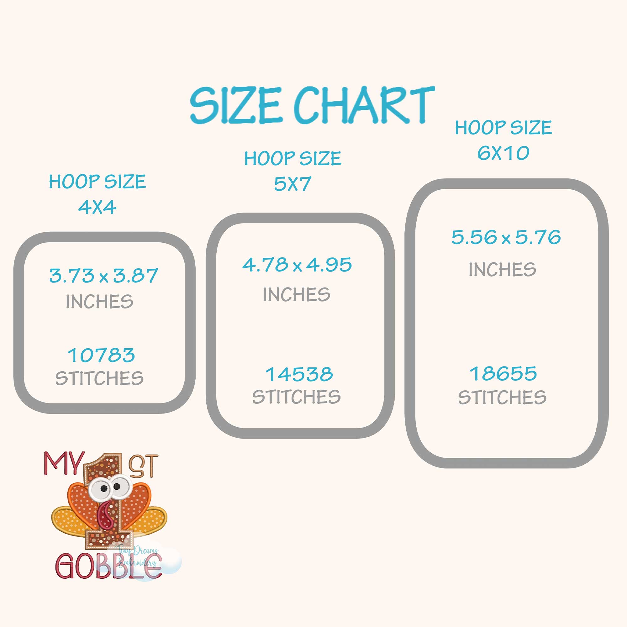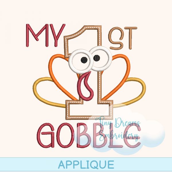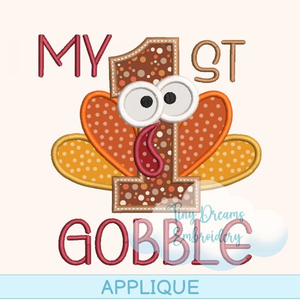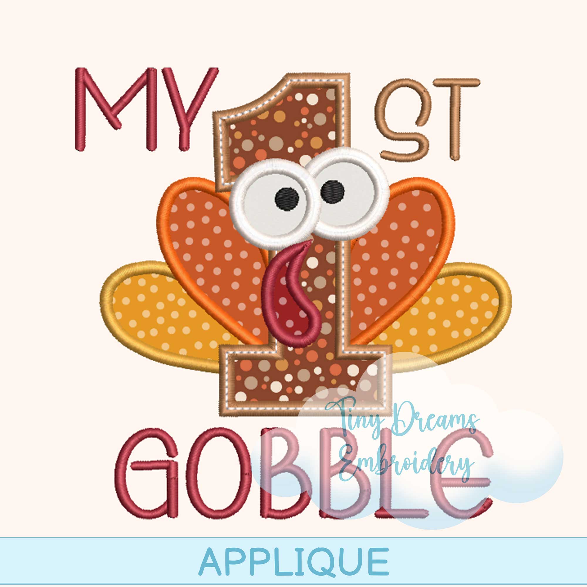 Celebrate a little one’s first Thanksgiving with this ‘My First Gobble’ Applique digital embroidery design. Featuring an adorable turkey and fall-themed details, it’s perfect for baby outfits and holiday keepsakes! 🦃🍂