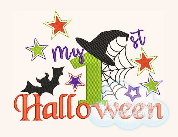 My first Halloween witch hat spider and bat embroidery design