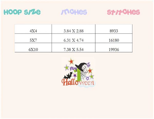 Be the first to review “My first Halloween witch hat spider and bat embroidery design”