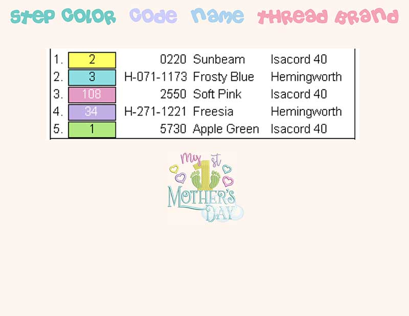 Be the first to review “My first Mother’s day with baby footprints and hearts embroidery design”