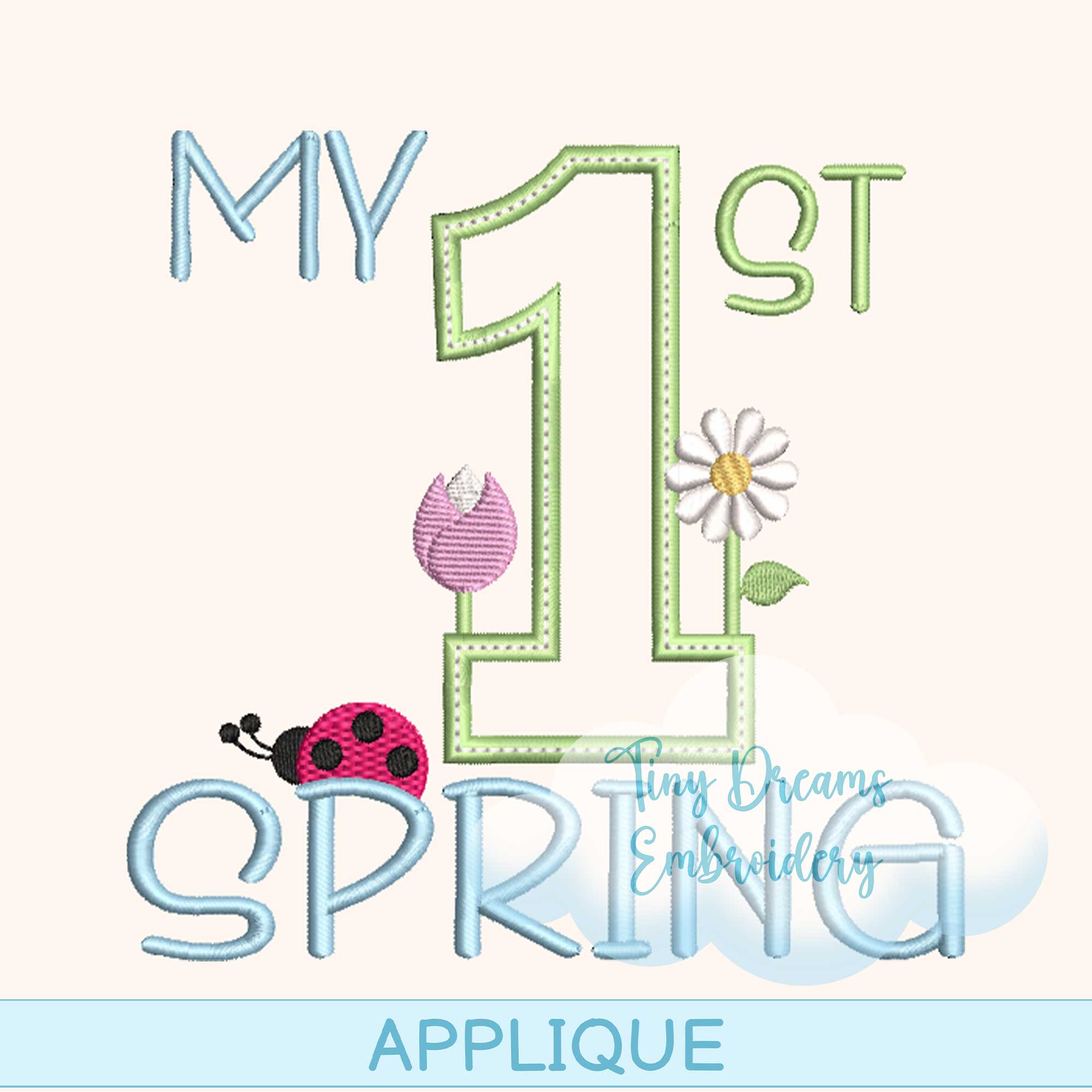 Celebrate your baby’s first season with this ‘My First Spring’ Applique digital embroidery design. Featuring daisies, tulips, and a cute ladybug, it’s perfect for springtime stitching! 🌸🐞