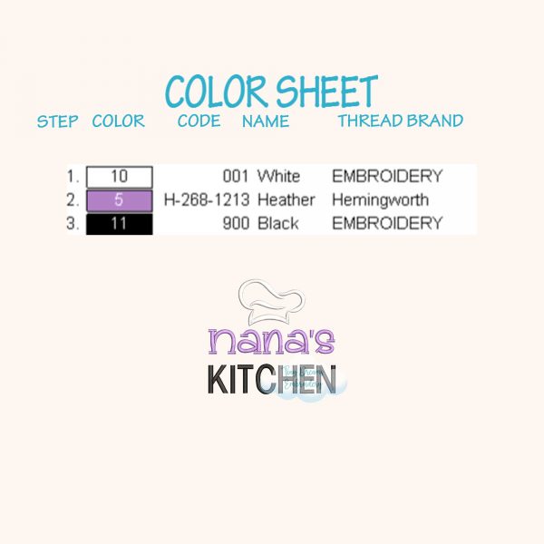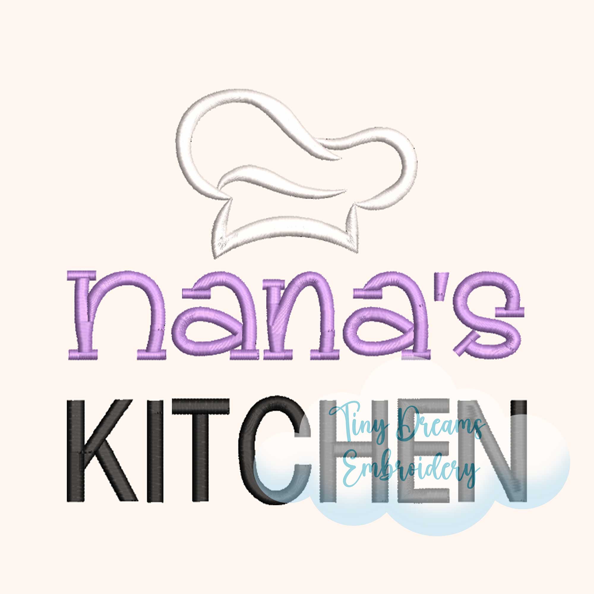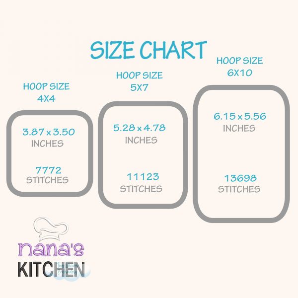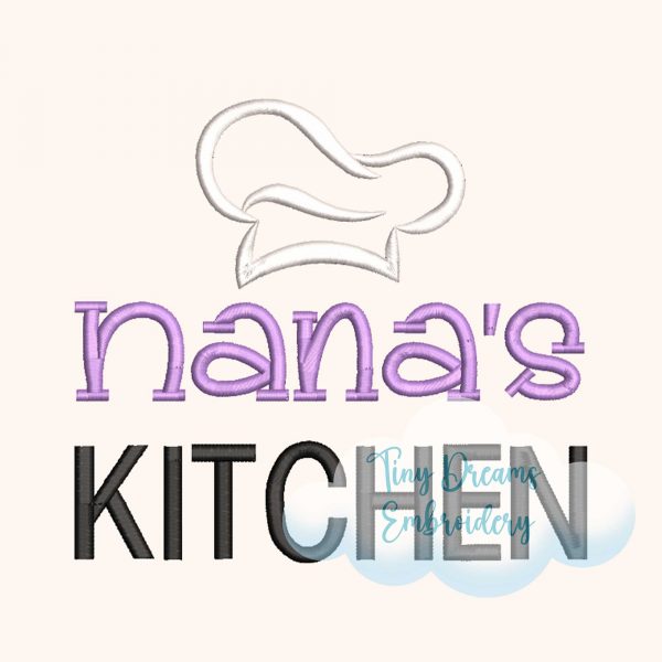 The “Nana Kitchen” digital machine embroidery design features a charming chef and baking theme. Celebrate grandma’s love for cooking with this delightful embroidery design, perfect for any grandmother who enjoys the kitchen.