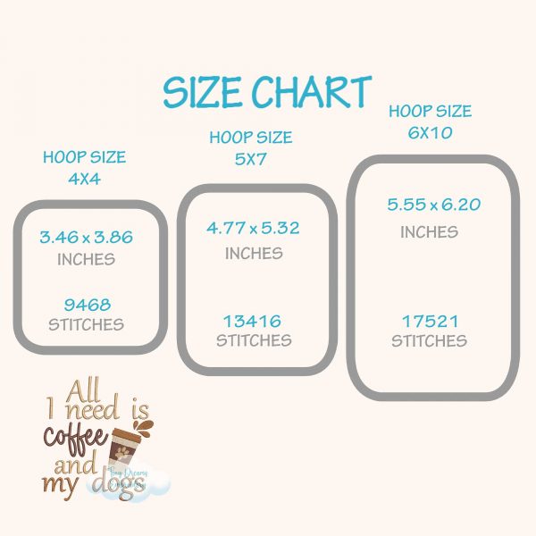 Start your day right with this Need Coffee Dog digital embroidery design. Perfect for coffee lovers and dog enthusiasts, featuring a cute paw print motif. 🐾☕🧵❤️