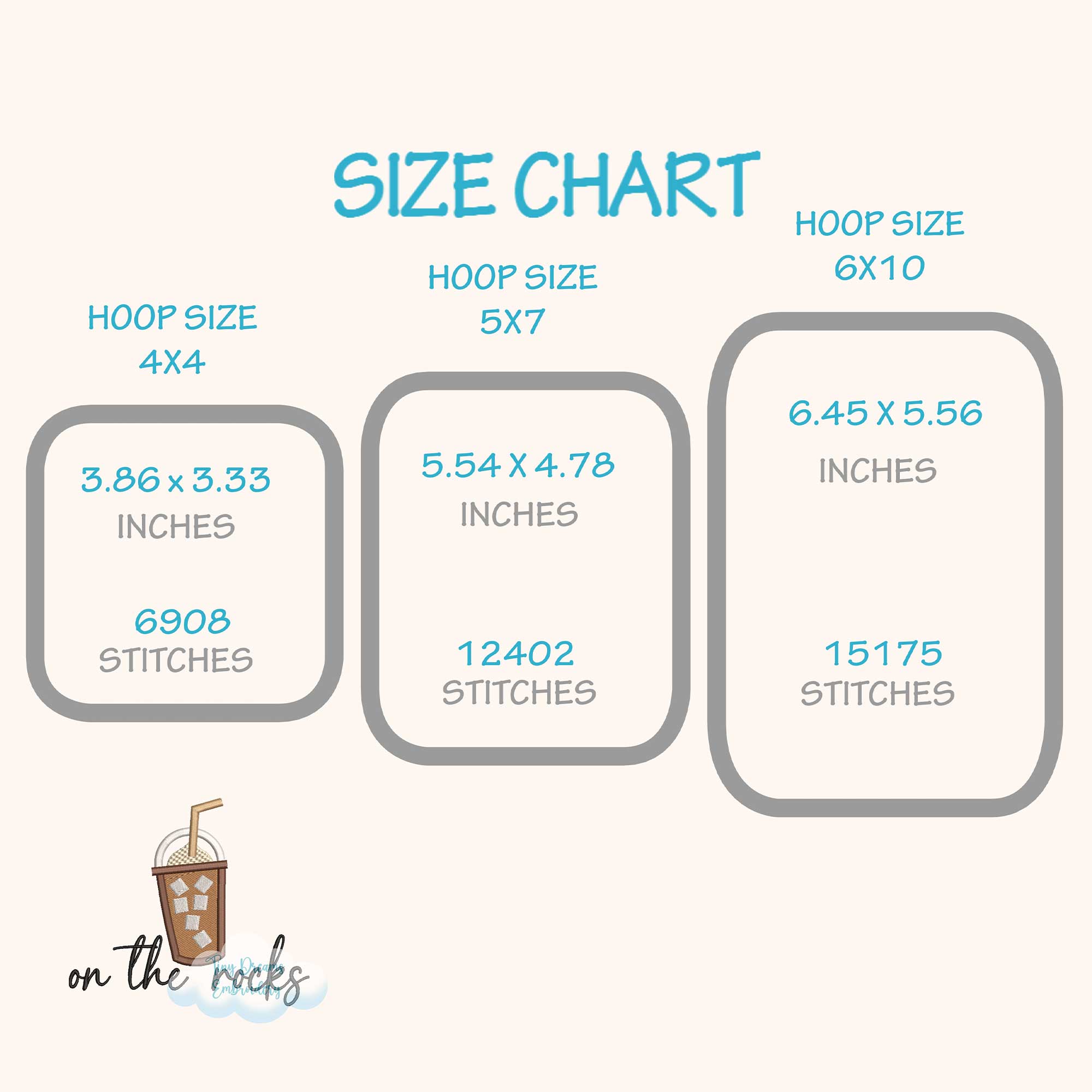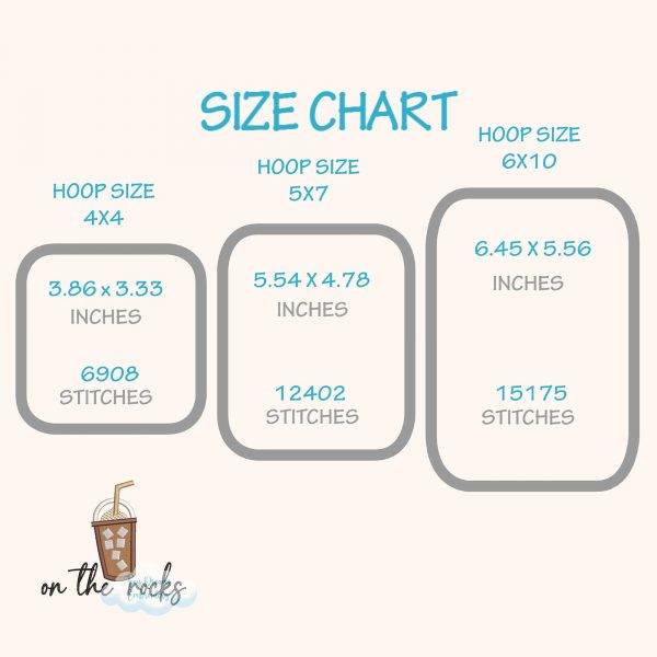 Enjoy your favorite brews with “On The Rocks” digital machine embroidery designs featuring iced coffee, cappuccino, mocha, and espresso. Perfect for coffee lovers and café-inspired creations! ☕🧊✨