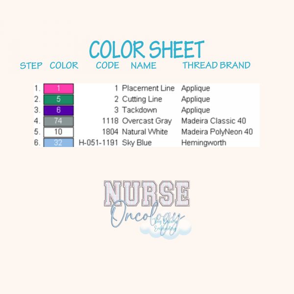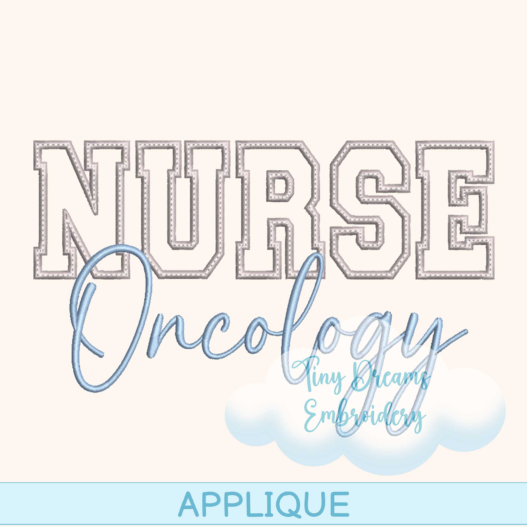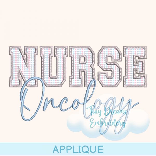 Create digital machine embroidery designs for oncology nurses and hospital themes, including nurse appliqué and medical motifs