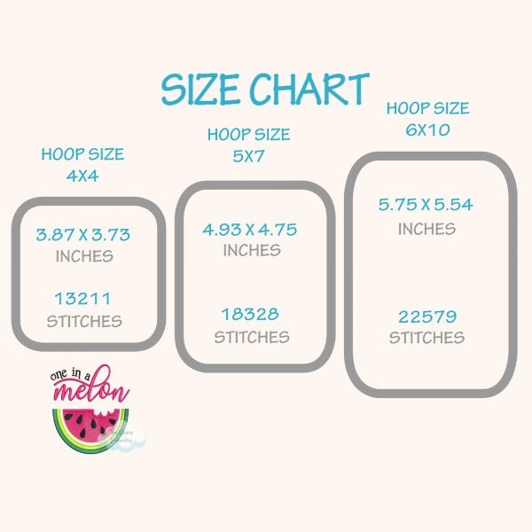 Indulge in the delightful ‘One in a Melon’ embroidery design, a perfect choice for your kitchen or summer-themed projects. This cheerful pattern features a juicy watermelon, adding a touch of fruity freshness to your creations.