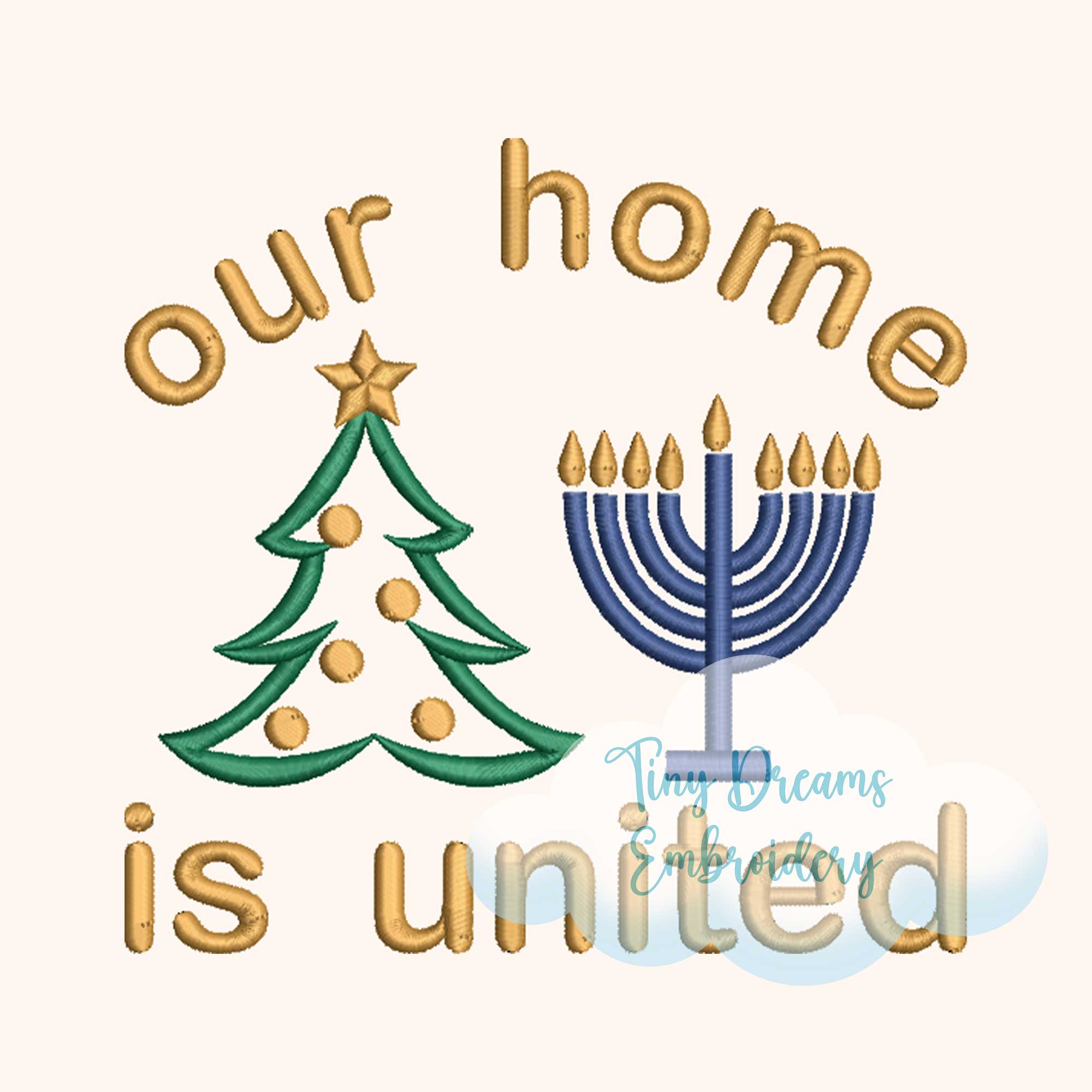 Celebrate unity and light with this Our Home United Menorah Candle Embroidery Design, blending Hanukkah and Christmas tree themes. Instantly download this machine embroidery design for meaningful holiday projects ✡️🎄
