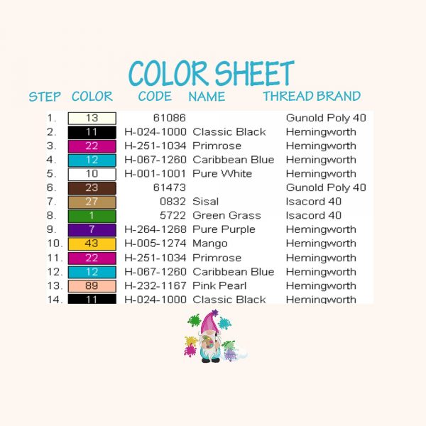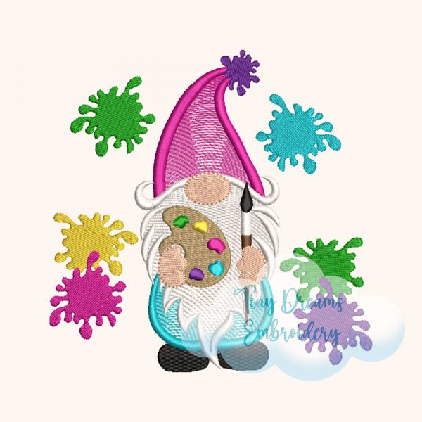 Add an artistic touch to your embroidery projects with our charming gnome design. This creative little fellow, equipped with a paintbrush and color palette, brings a playful twist to the world of art-inspired embroidery.