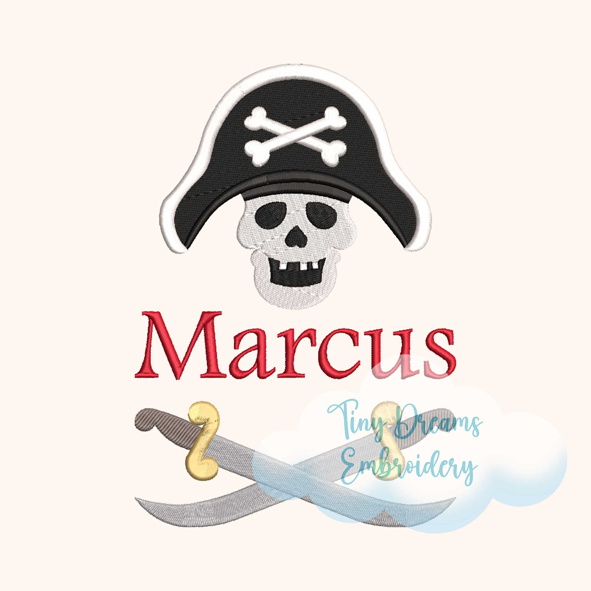 Pirate Skull Embroidery Design: Baby Boy Monogram, Custom Name, Pirate Swords (Digital Download)