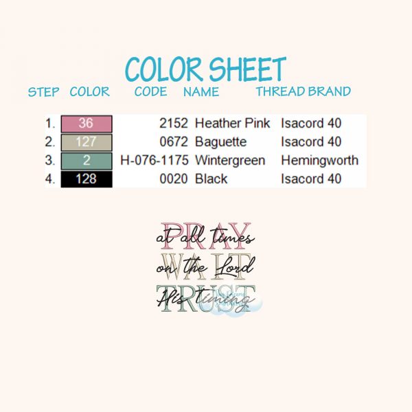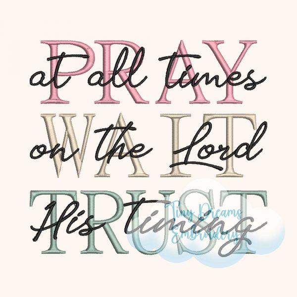 Inspire faith with this Pray Wait Trust digital embroidery design. Perfect for Christian projects, featuring a beautiful message of prayer and trust in God. ✝️🙏🧵💖