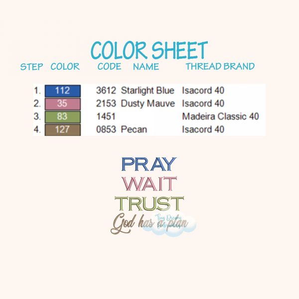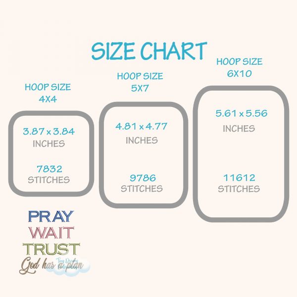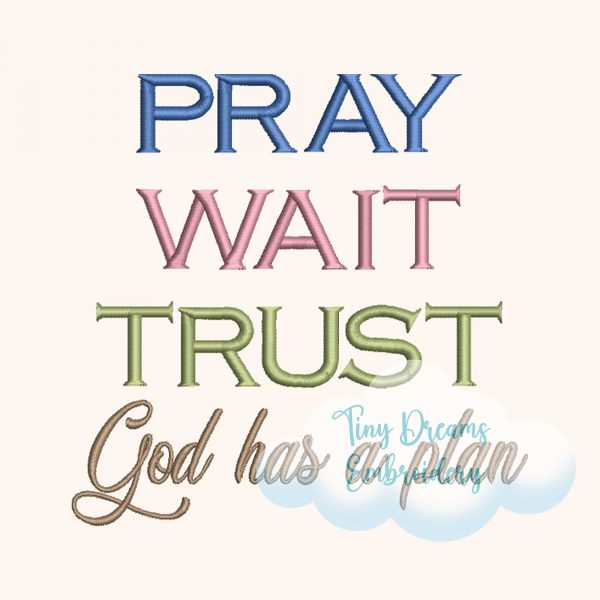 Find comfort and inspiration with this ‘Pray, Wait, Trust’ machine embroidery design. Featuring a faith-filled message and elegant details, it’s perfect for religious and prayer-themed projects. ✝️🙏