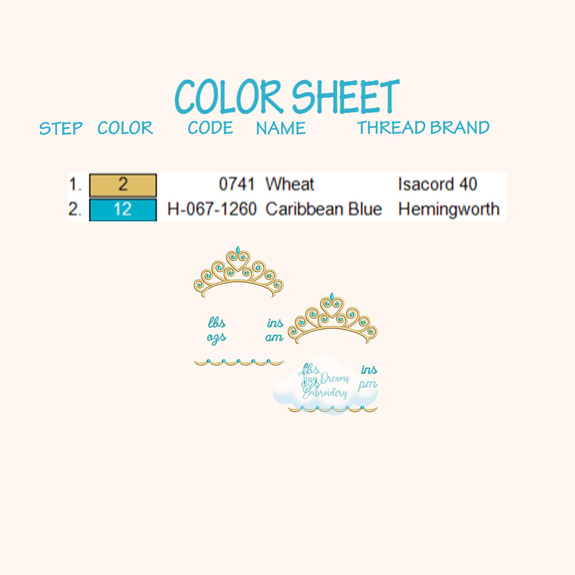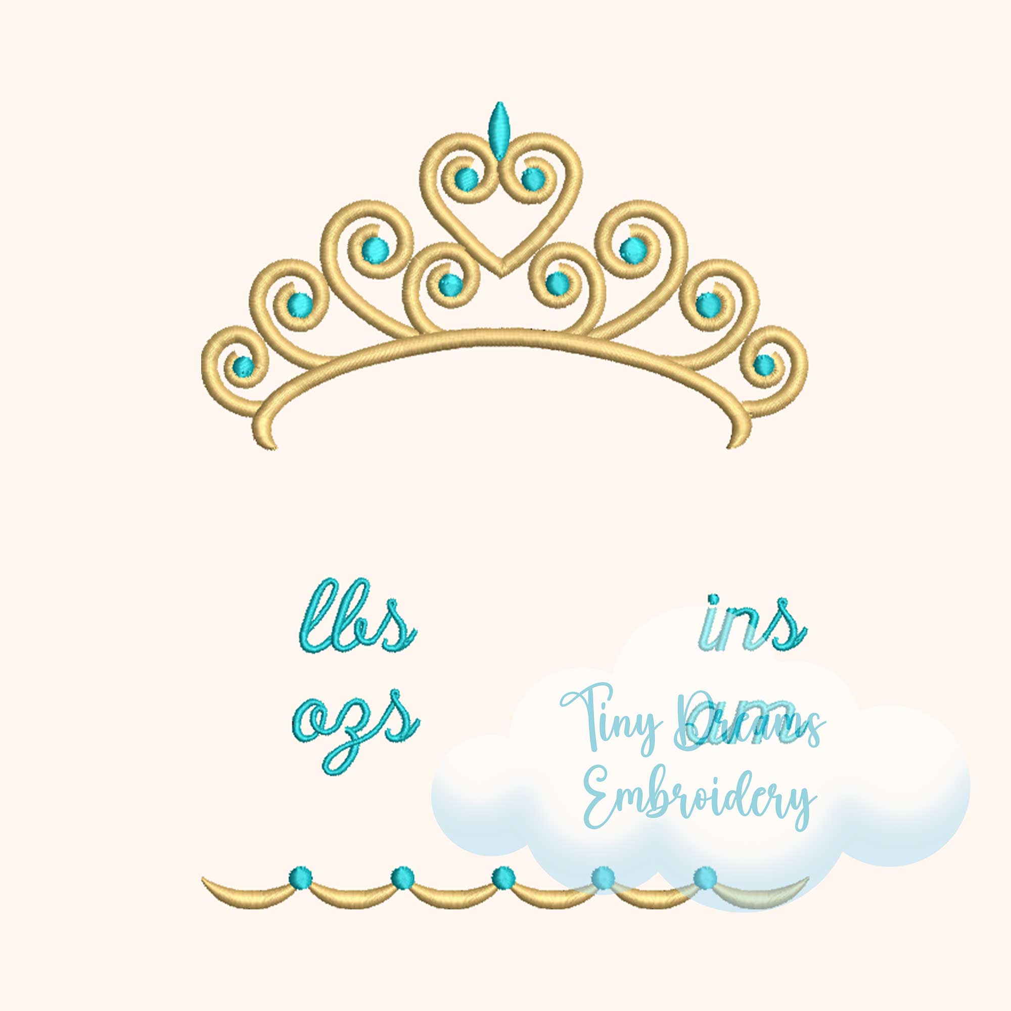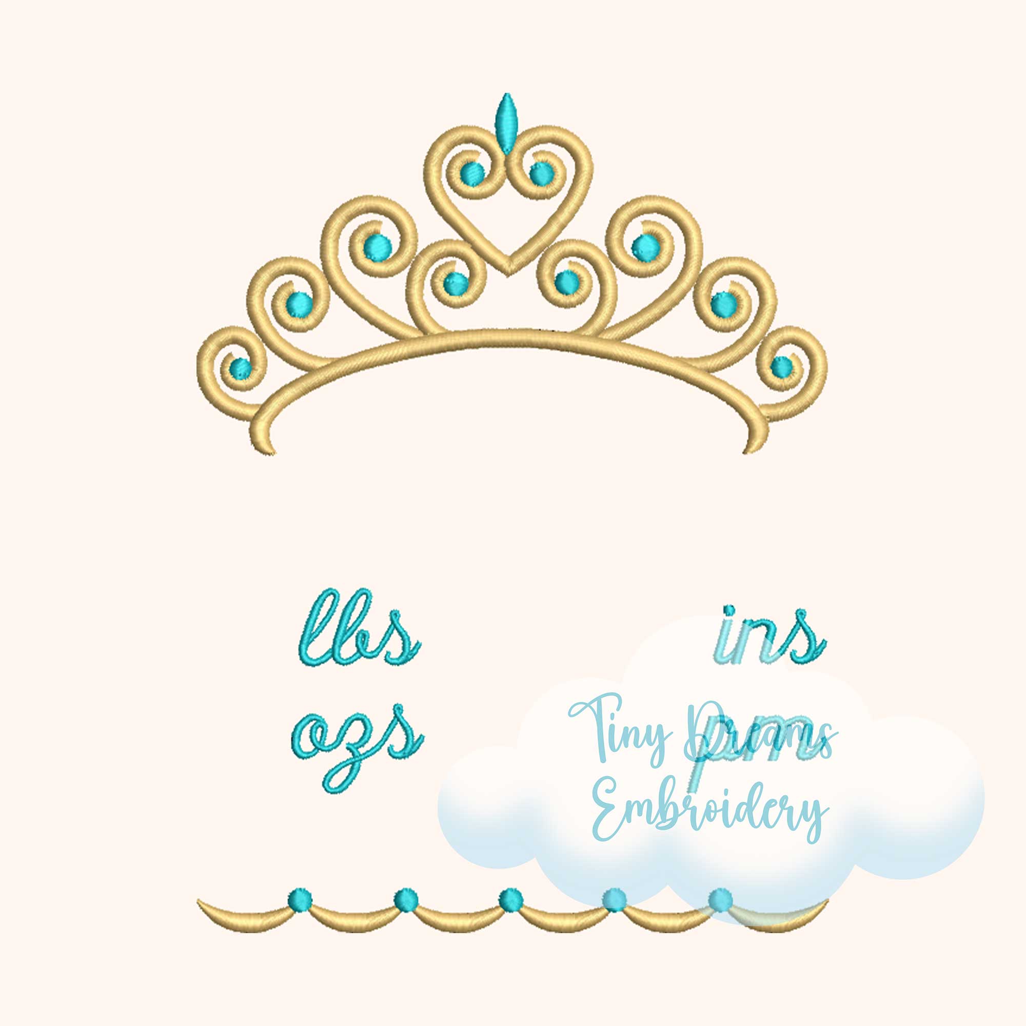 Celebrate your little royal with the Princess Crown Birth Announcement embroidery design, perfect for a newborn baby girl. Personalize this elegant crown motif to create a keepsake fit for a princess!