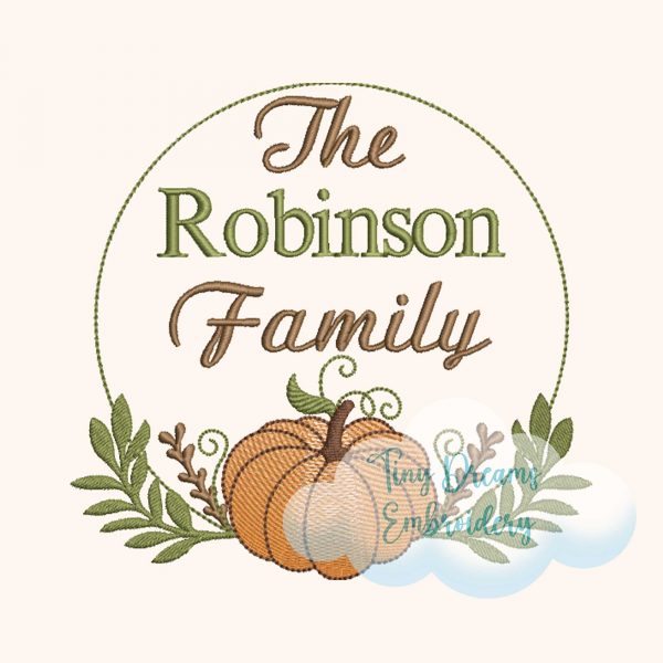 Embrace the spirit of fall with our charming pumpkin-themed digital machine embroidery design. Personalize it with your family name, making it a heartwarming addition to your autumn creations.