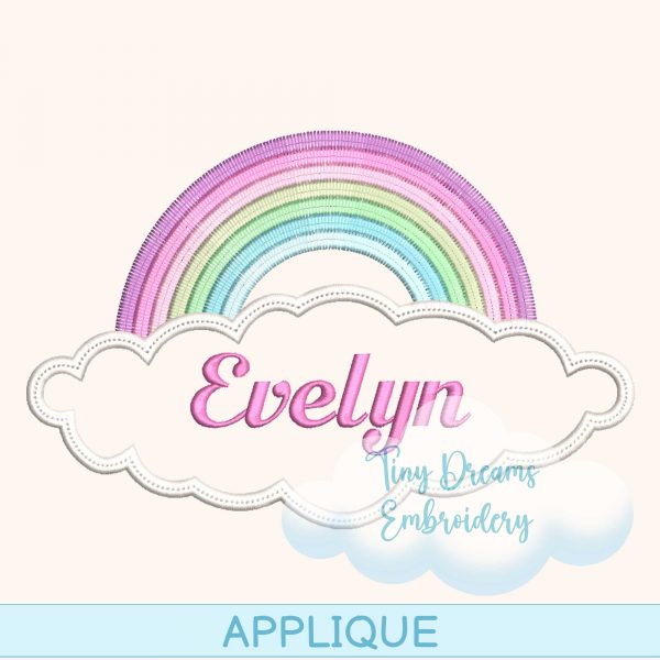 Rainbow Applique Digital Machine Embroidery Design Monogram Cloud Applique Design Embroidery Girl Personalized Name Applique Light Stitch