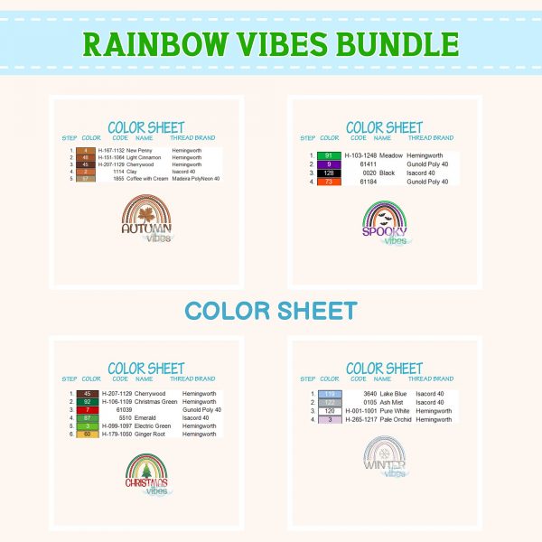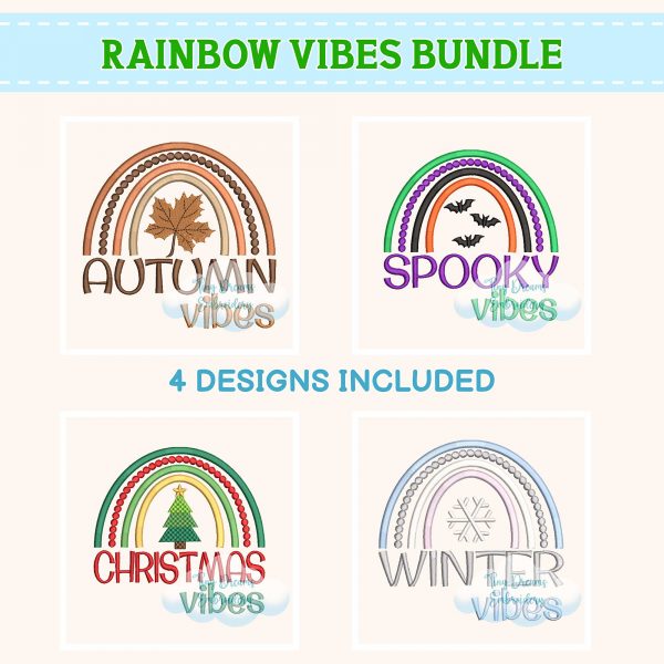 Brighten every season with this Rainbow Embroidery 4 Designs Bundle, featuring autumn leaves, a snowflake, a Halloween bat, and a Christmas tree. Instantly download this seasonal embroidery set for colorful year-round projects 🌈🍂❄️🎄🦇