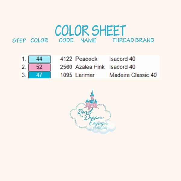 ☁️ The size chart (hoops, sizes and stitches) and color sheet appear on the left side of the image when you click on it.