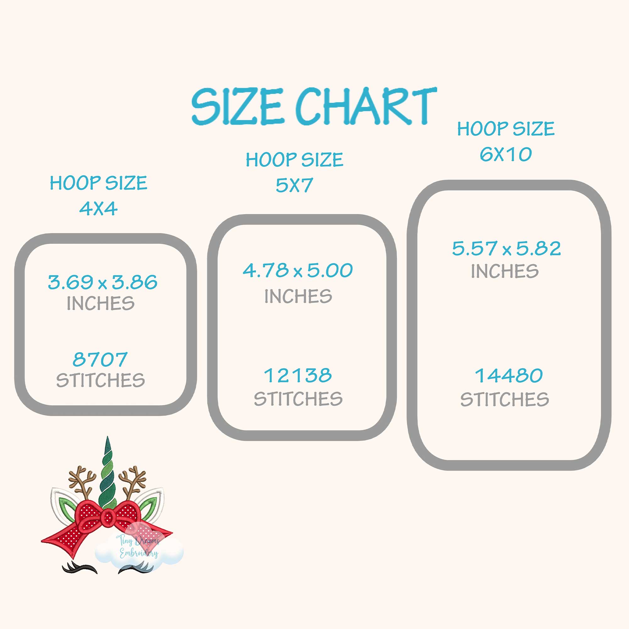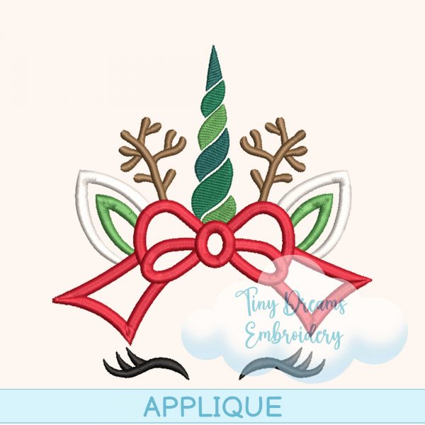 Celebrate the season with our Reindeer Christmas Unicorn Applique Digital Machine Embroidery Design, showcasing a cute baby unicorn with festive flair. This coquette applique features a charming Christmas bow, perfect for adding a playful touch to your holiday projects.