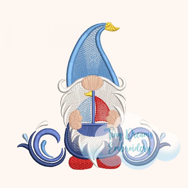 Introducing our charming Beach Gnome digital embroidery design, featuring a delightful gnome enjoying the waves on a sailboat. This nautical-themed embroidery captures the essence of seaside adventures, bringing a touch of maritime magic to your creations.