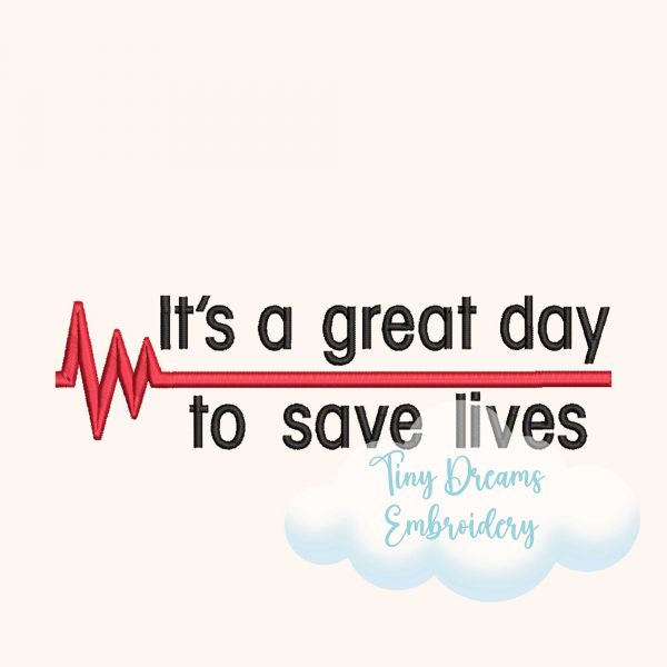 Save Lives Lifeline Digital Machine Embroidery Design Great Day Embroidery Design Nurse Embroidery Design Doctor Hospital Embroidery Design
