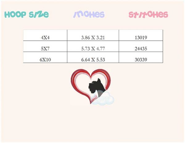Be the first to review “Schnauzer dog heart love embroidery design”