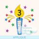 Mark the second birthday of your little one with a delightful digital machine embroidery design showcasing a candle and stars, designed for boys or girls. This charming applique design adds a special touch to celebrate this important milestone, ideal for creating personalized decorations or keepsakes.