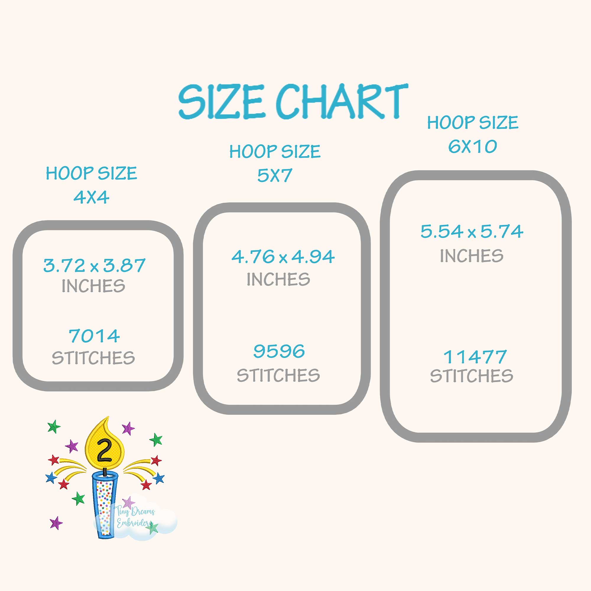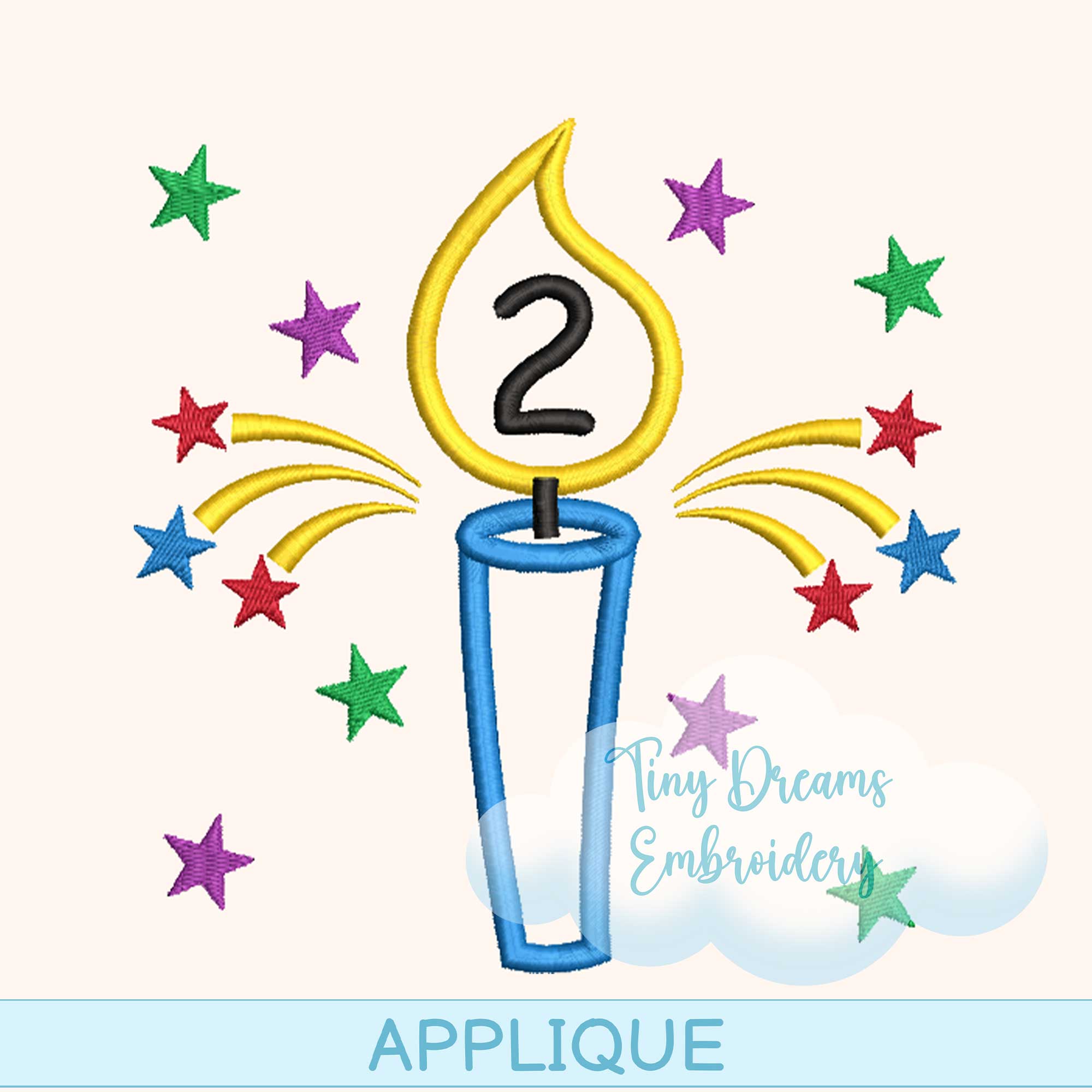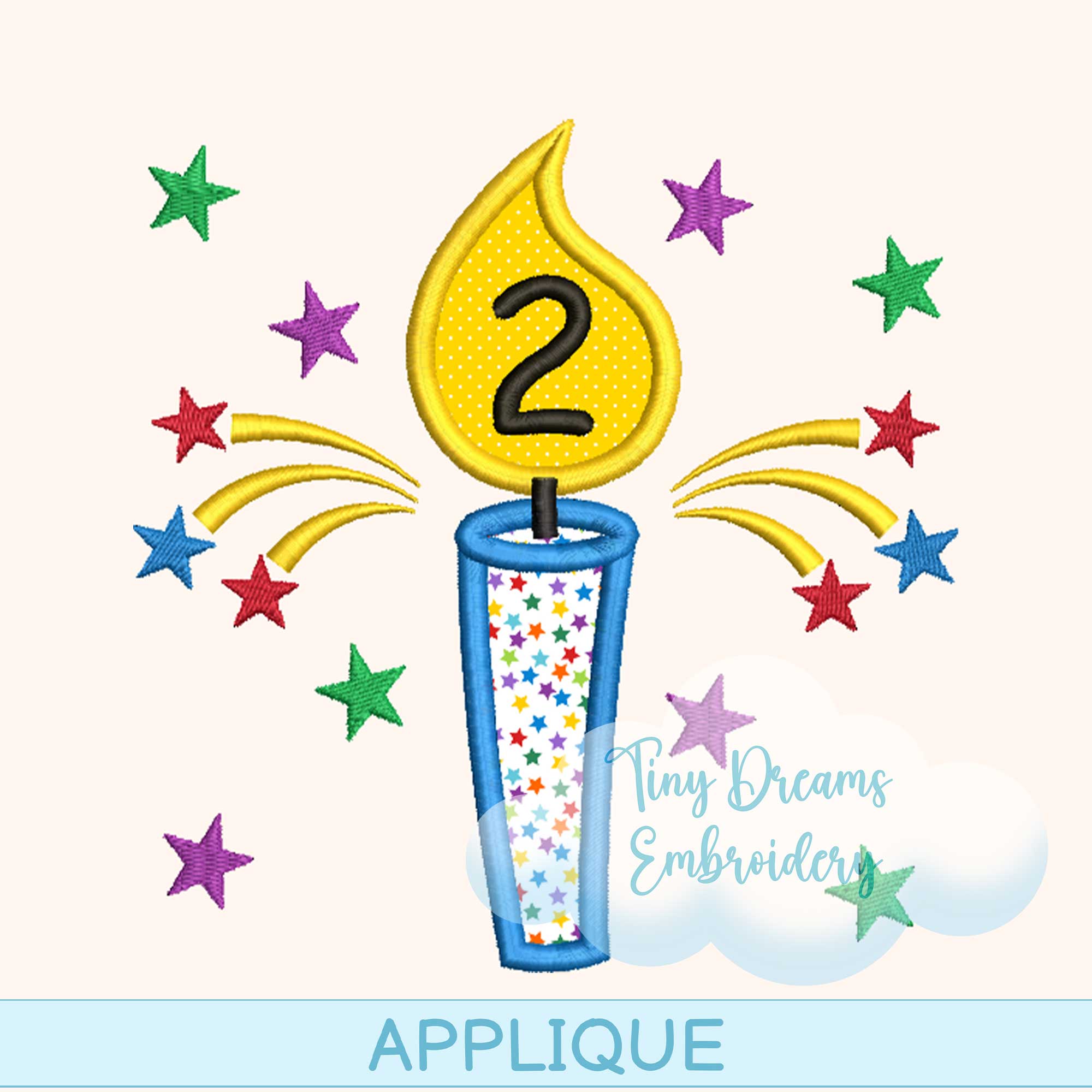 Mark the second birthday of your little one with a delightful digital machine embroidery design showcasing a candle and stars, designed for boys or girls. This charming applique design adds a special touch to celebrate this important milestone, ideal for creating personalized decorations or keepsakes.