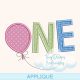 First Year Birthday Applique Digital Machine Embroidery Design One Birthday Balloon Embroidery Design Applique Birthday Balloon Embroidery