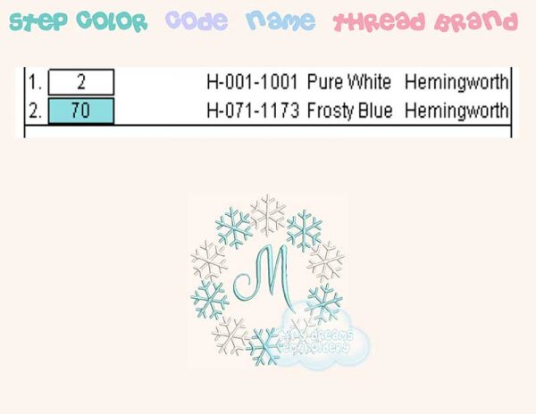 Snowflakes monogram/name (name/monogram/font not included) embroidery design