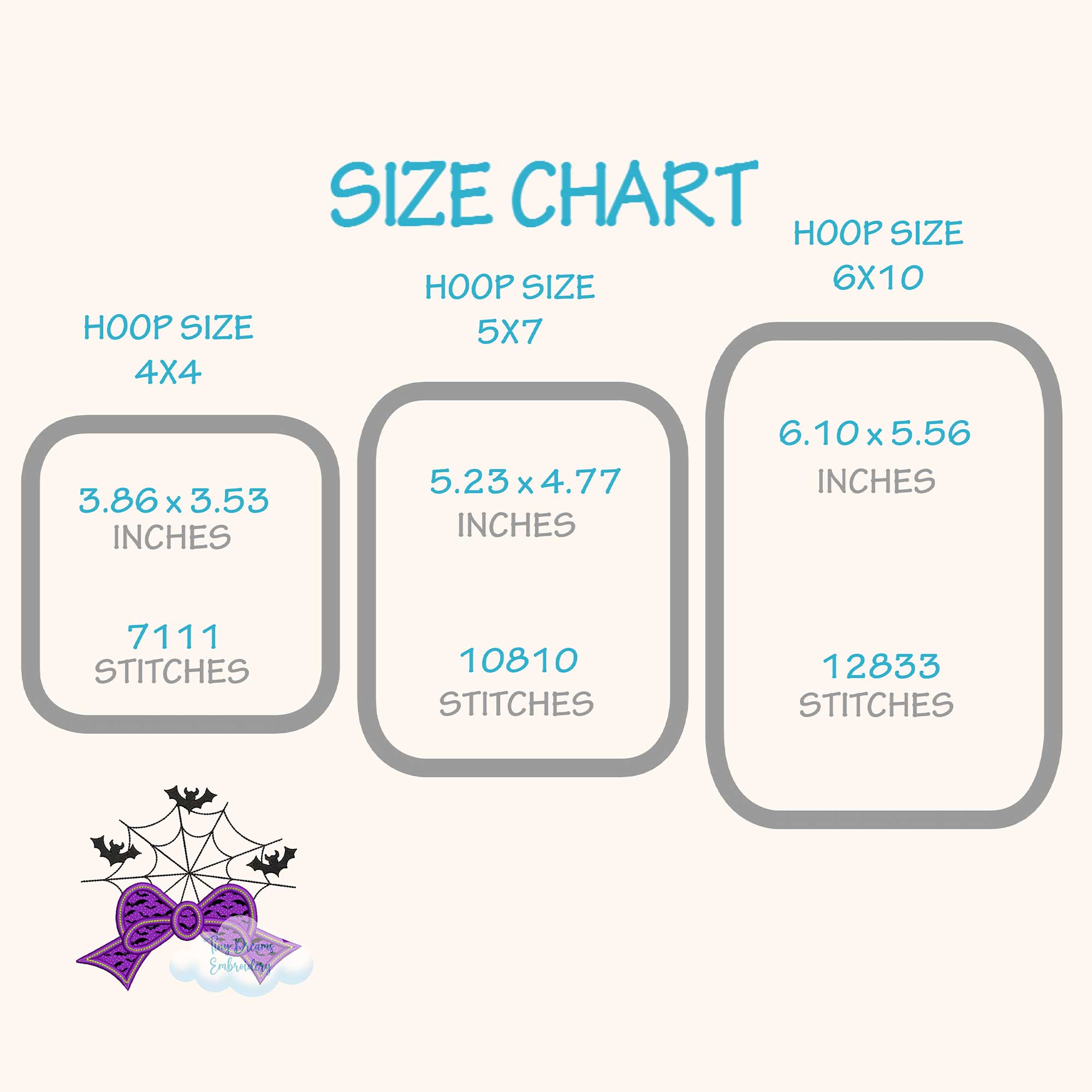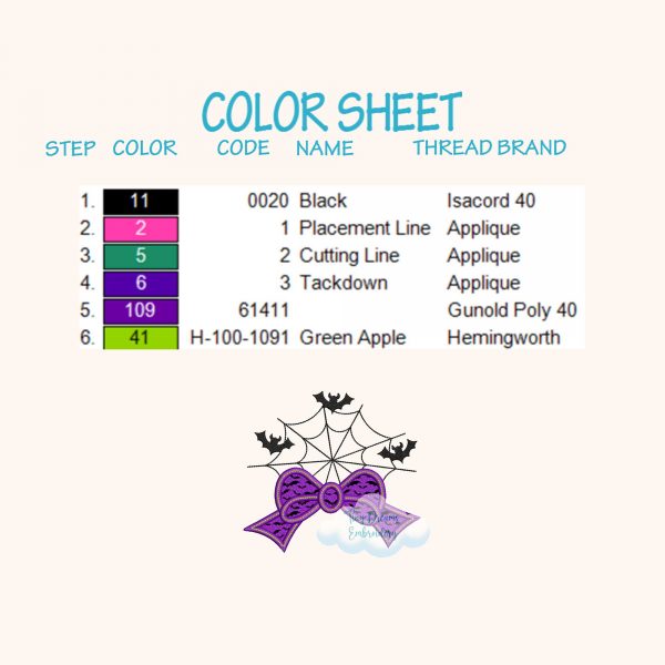 ☁️ The size chart (hoops, sizes and stitches) and color sheet appear on the left side of the image when you click on it.