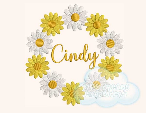 Spring daisies flowers name/monogram (name/monogram/font not included) embroidery design