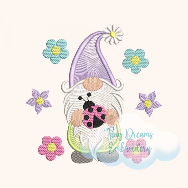 Spring Gnome Digital Machine Embroidery Design Ladybug Design Embroidery Floral Gnome Embroidery Design Daisy Embroidery Design Flower Gnome