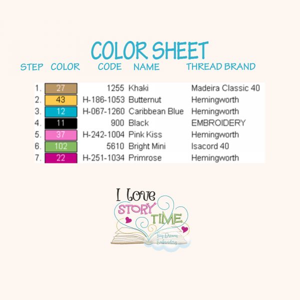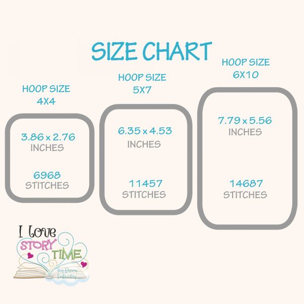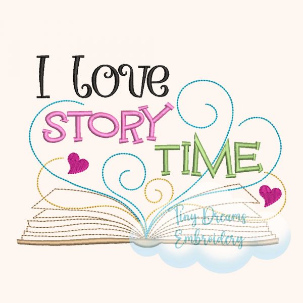 The “Story Time” embroidery design is perfect for book lovers, featuring a cozy reading pillow and book motif. A delightful way to celebrate a love of reading!