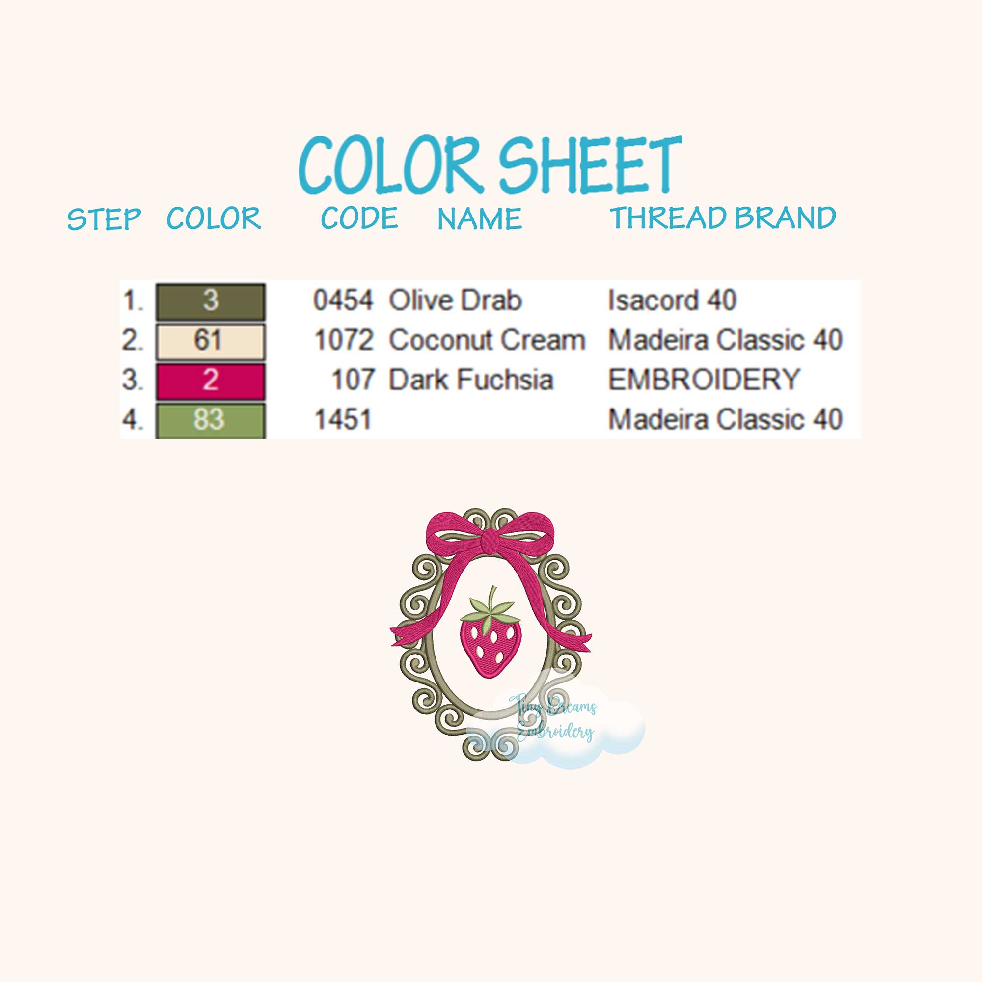 Strawberry cameo embroidery design with border & bow – perfect for kitchen, fruit, or berry-themed projects. Adds a fresh, sweet touch to any creation. 🍓🎀🌿✨