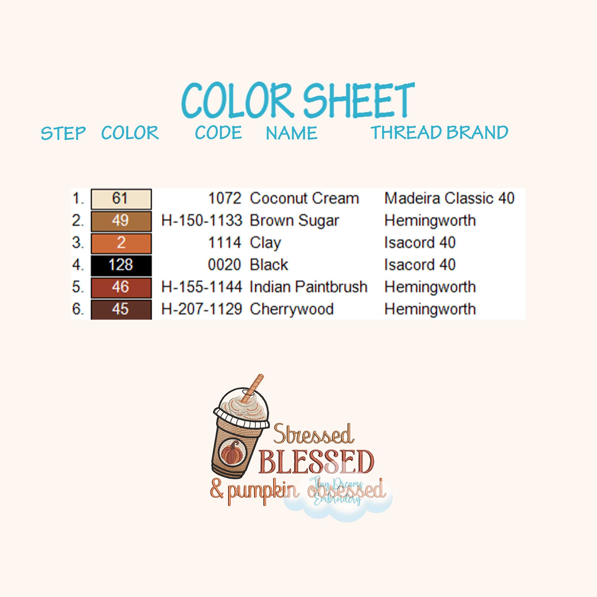 Stressed Blessed Pumpkin Obsessed embroidery design, perfect for fall and autumn coffee lovers. Celebrate pumpkin season with this fun and cozy design 🎃☕🍂🧵✨