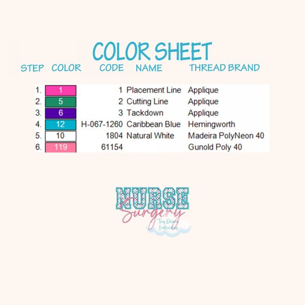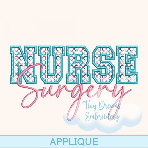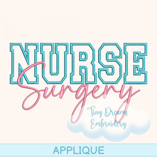 This Surgery Nurse digital machine embroidery design features a detailed applique, perfect for honoring nurses who provide special care during procedures. Add a thoughtful touch to your projects with this unique surgical-themed embroidery design.