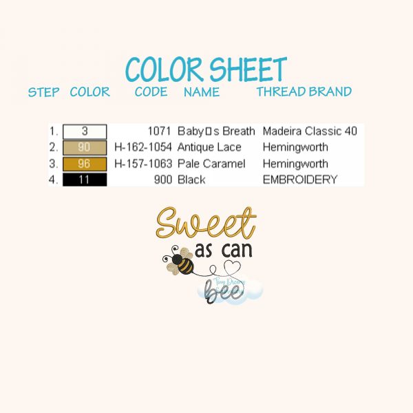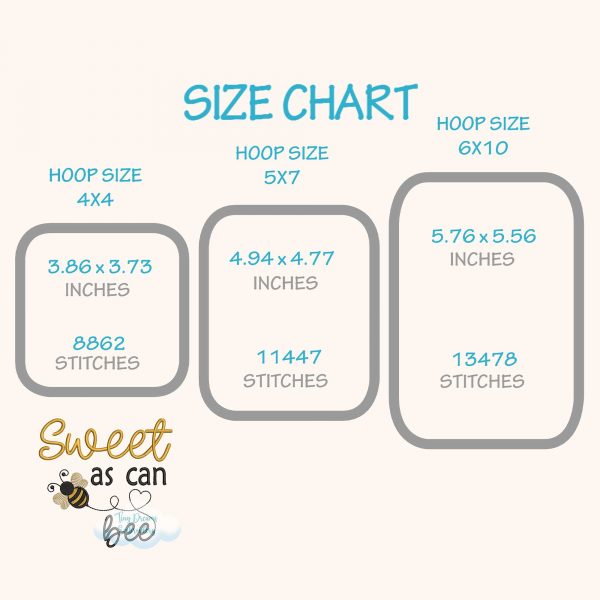 The “Sweet Bee” digital machine embroidery design features an adorable baby bee, perfect for a spring-themed creation. This charming design brings a touch of sweetness and warmth to any embroidery project.