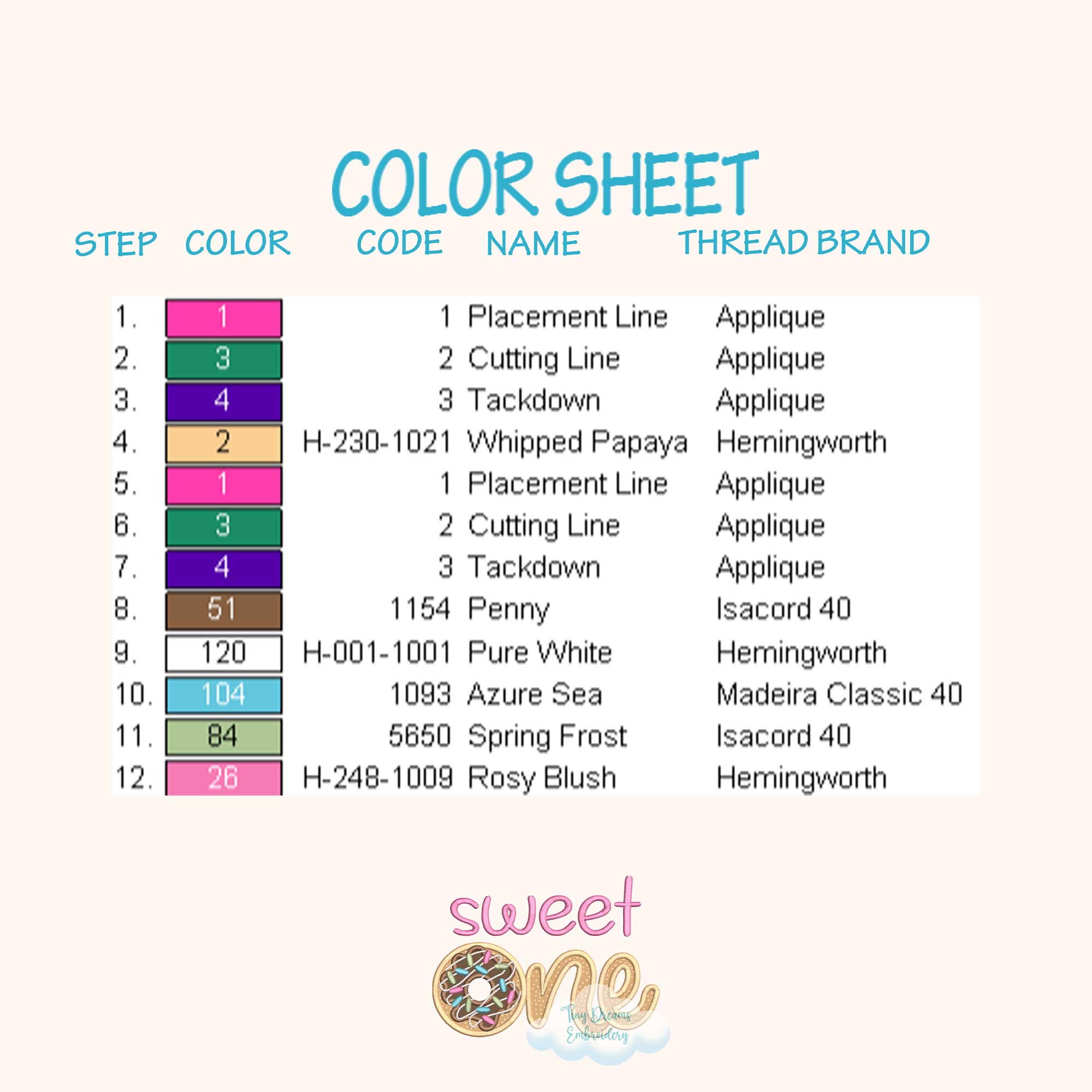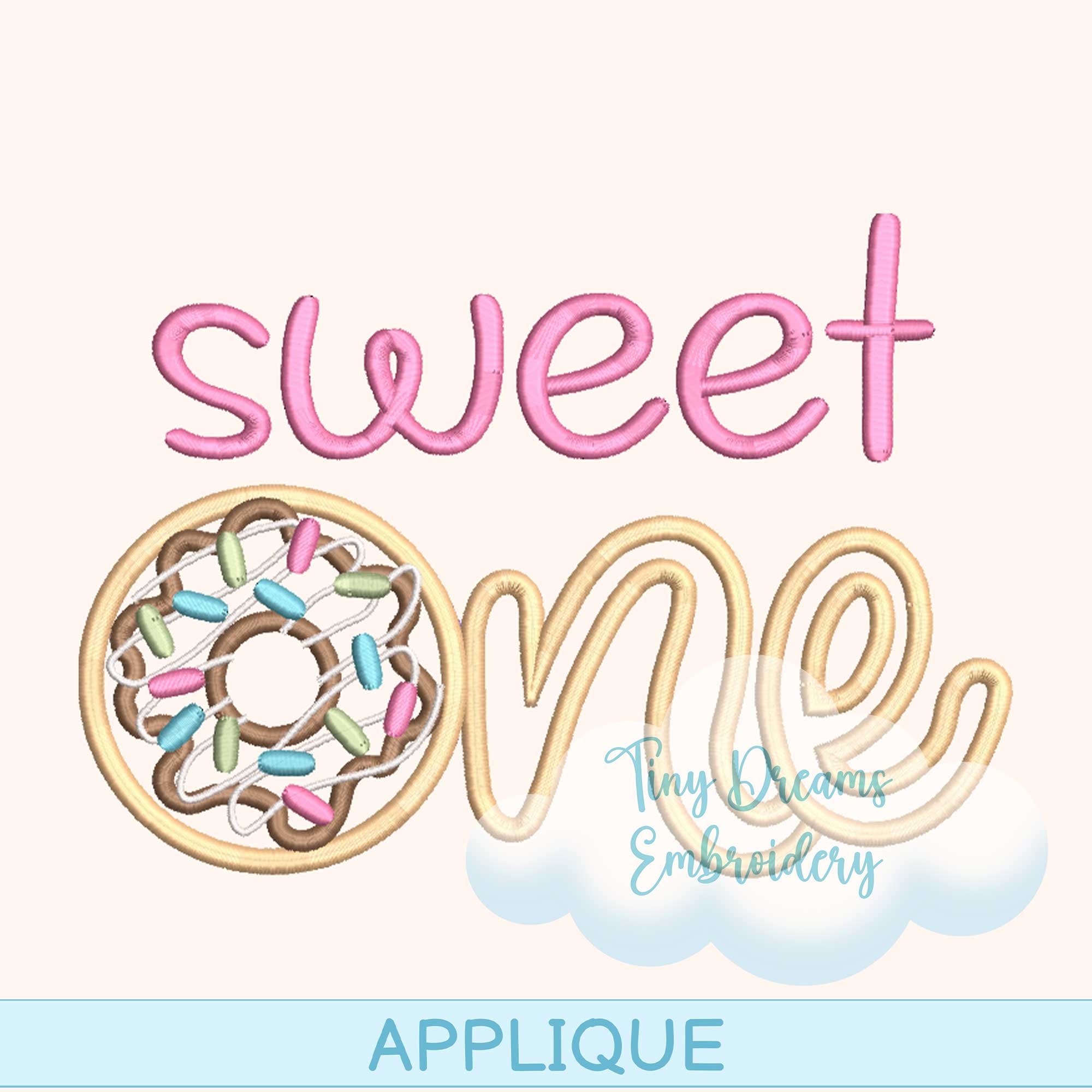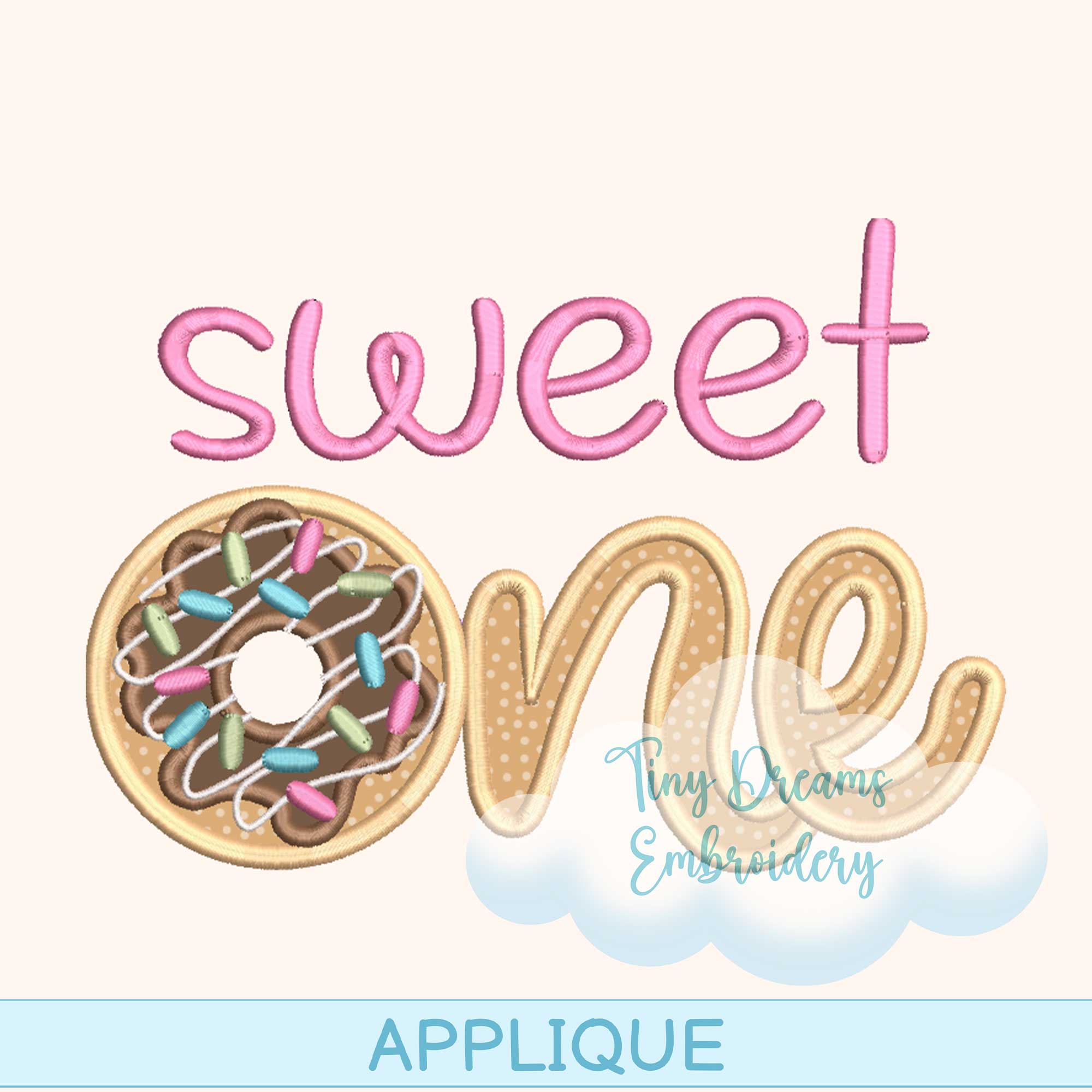 Sweet One donut applique embroidery design, perfect for baby first birthday celebrations.