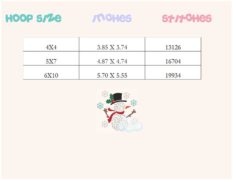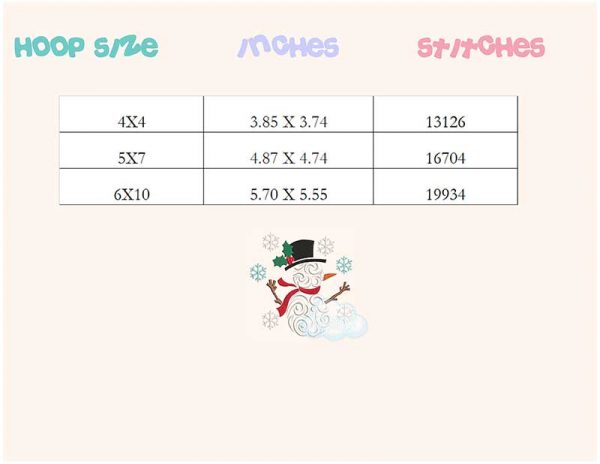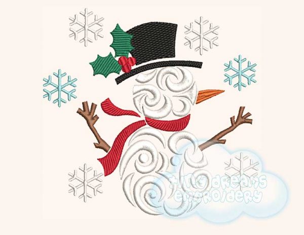 Be the first to review “Swirl snowman with snowflakes embroidery design”