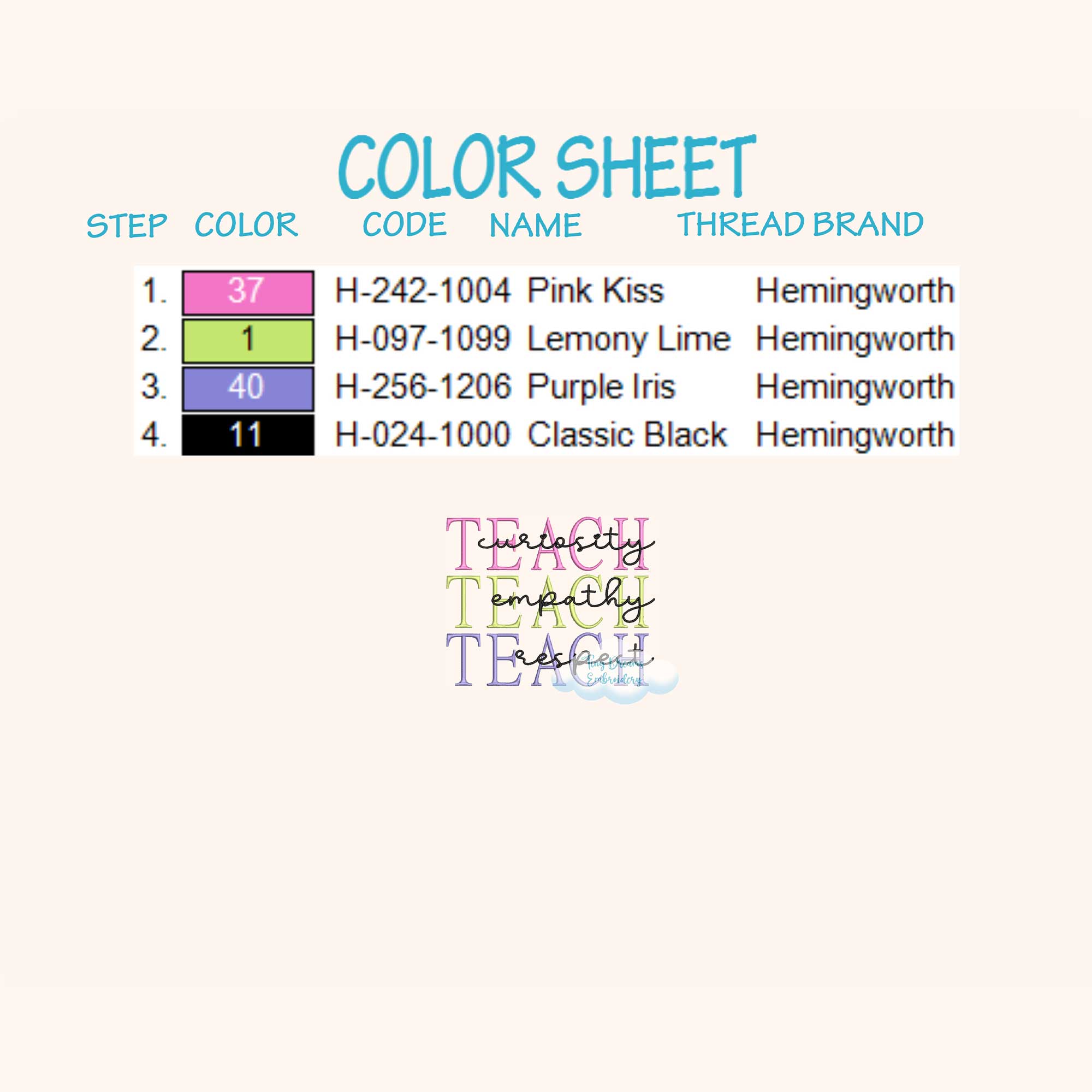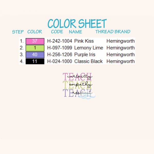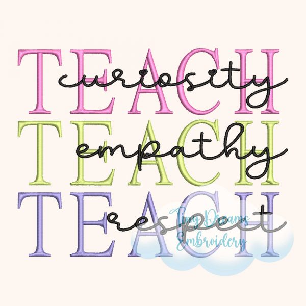 Teach Digital Machine Embroidery Design Curiosity Embroidery Design Empathy Embroidery Design Respect Embroidery Design Teacher Love Design