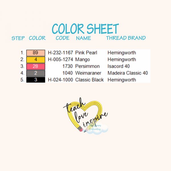 Be the first to review “Teach Love Inspire Digital Machine Embroidery Design Teacher Love Heart Embroidery Design Pencil Heart Design Embroidery School Class Design”