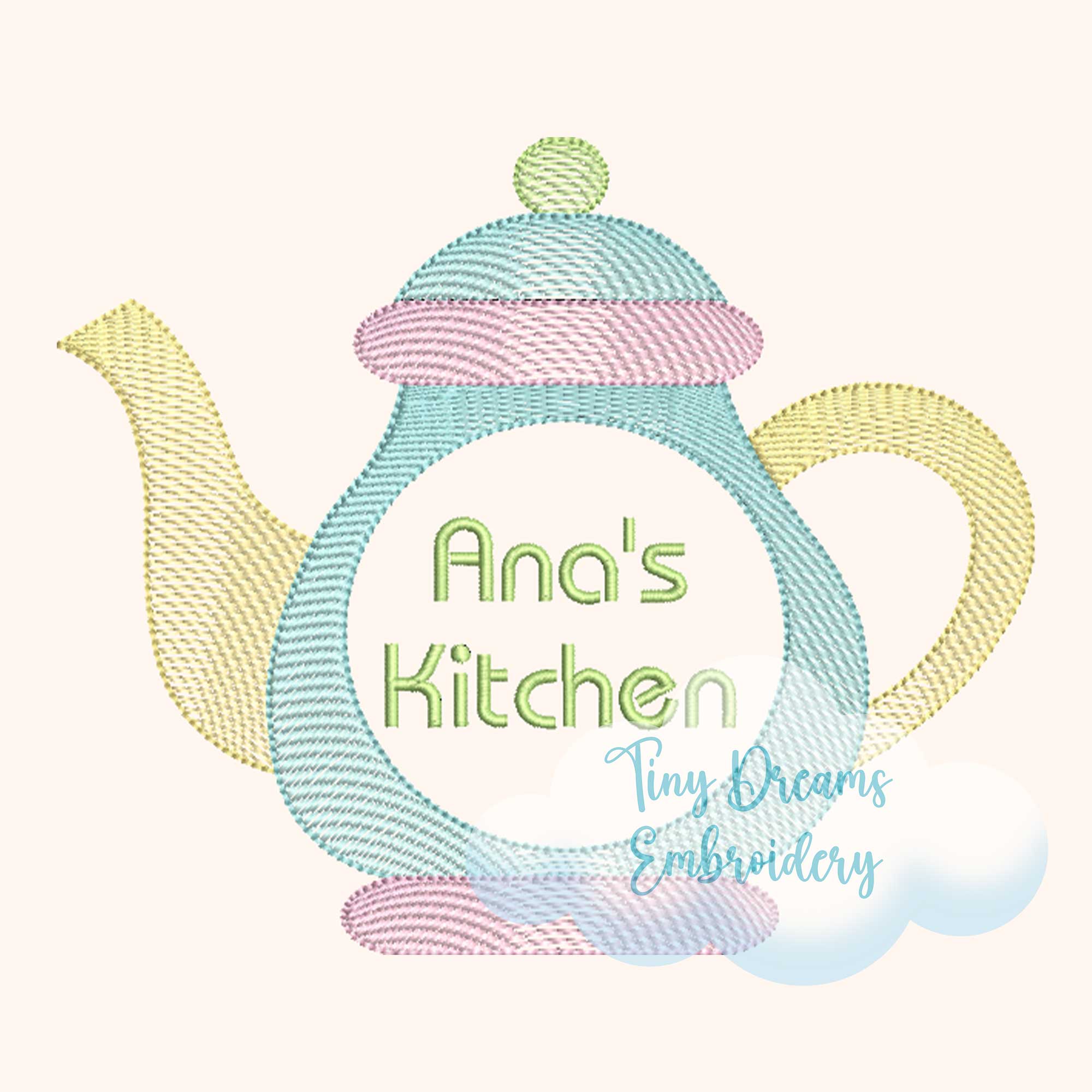 Add a touch of charm to your kitchen decor with our teapot-themed digital machine embroidery design. This pattern even includes a custom monogram option, allowing you to personalize it with a tea-loving touch.