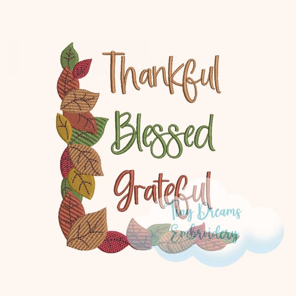 Add seasonal charm with this Thankful Blessed Grateful Embroidery Design, featuring a fall leaves border for autumn projects. Instantly download this machine embroidery design for festive and heartfelt creations 🍂🍁