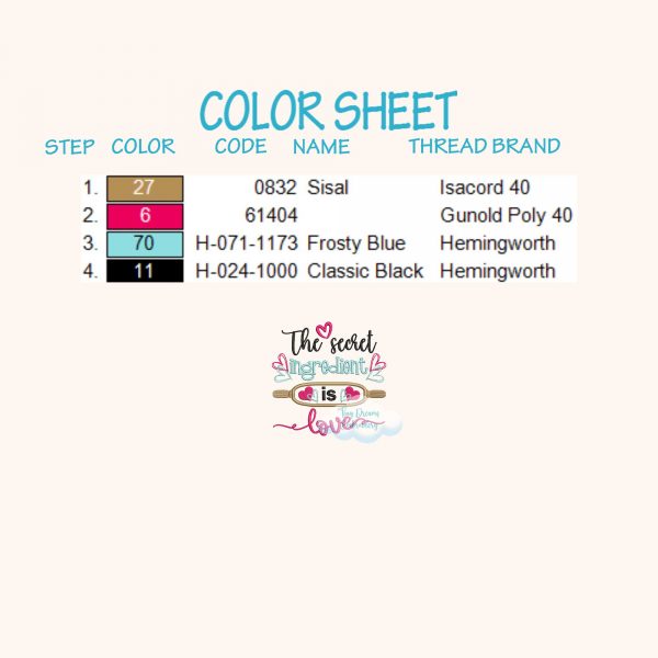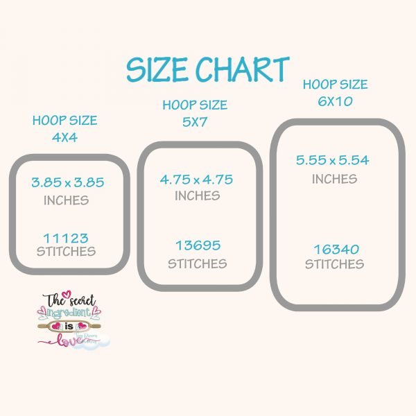 Infuse your kitchen with love using our digital machine embroidery design. This Valentine-themed creation combines a heartwarming message with elements of baking, adding a touch of secret sweetness to your culinary endeavors.