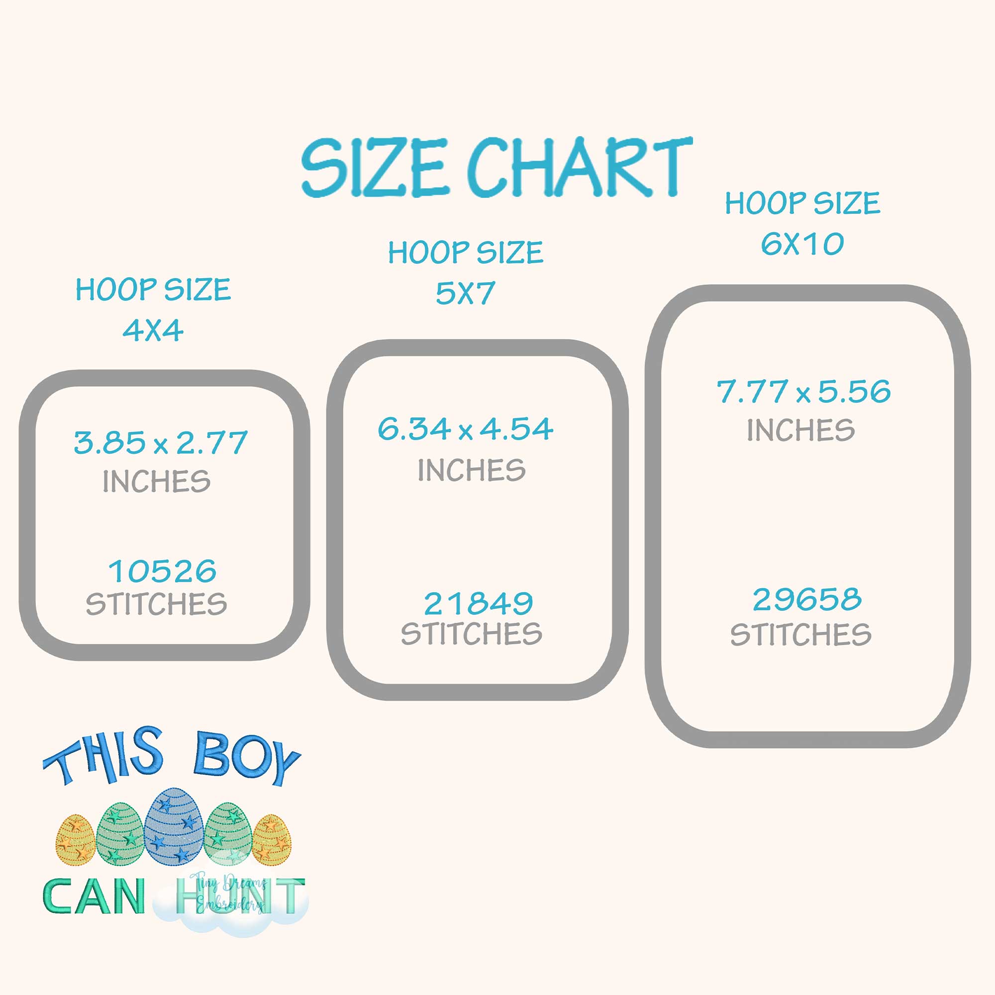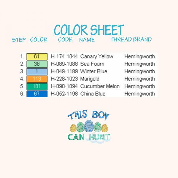 ☁️ The size chart (hoops, sizes and stitches) and color sheet appear on the left side of the image when you click on it.